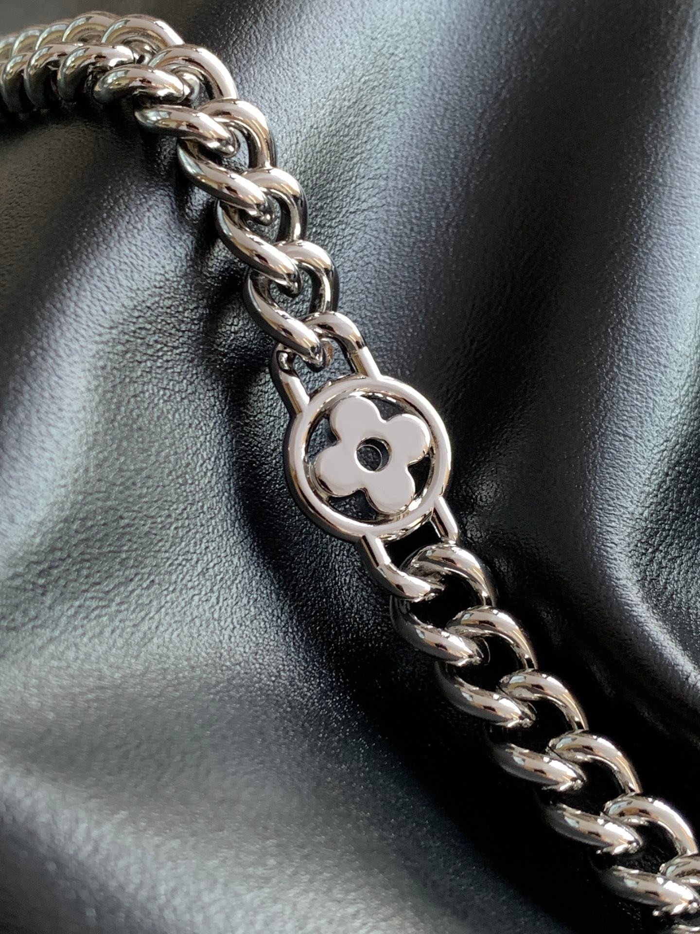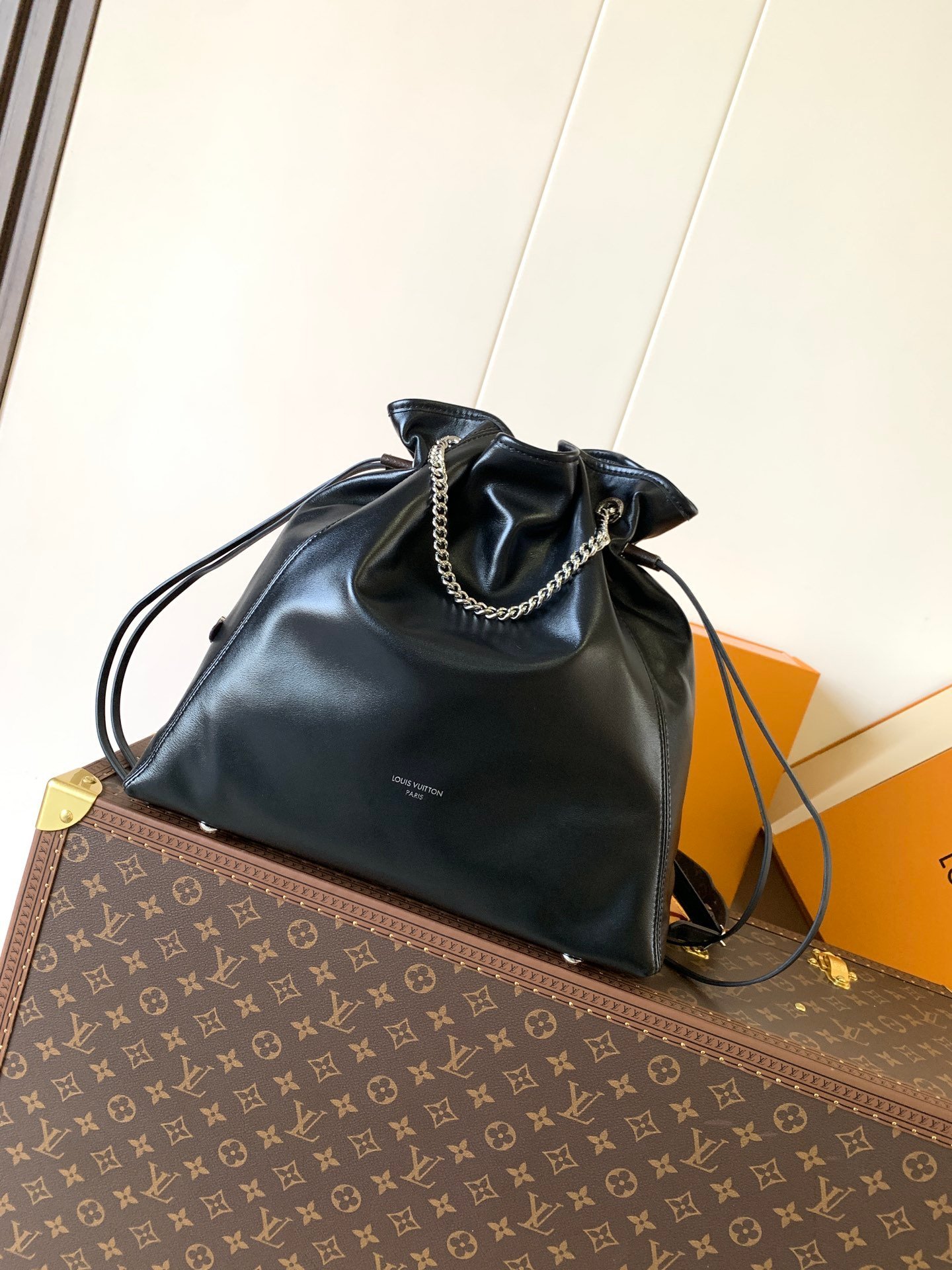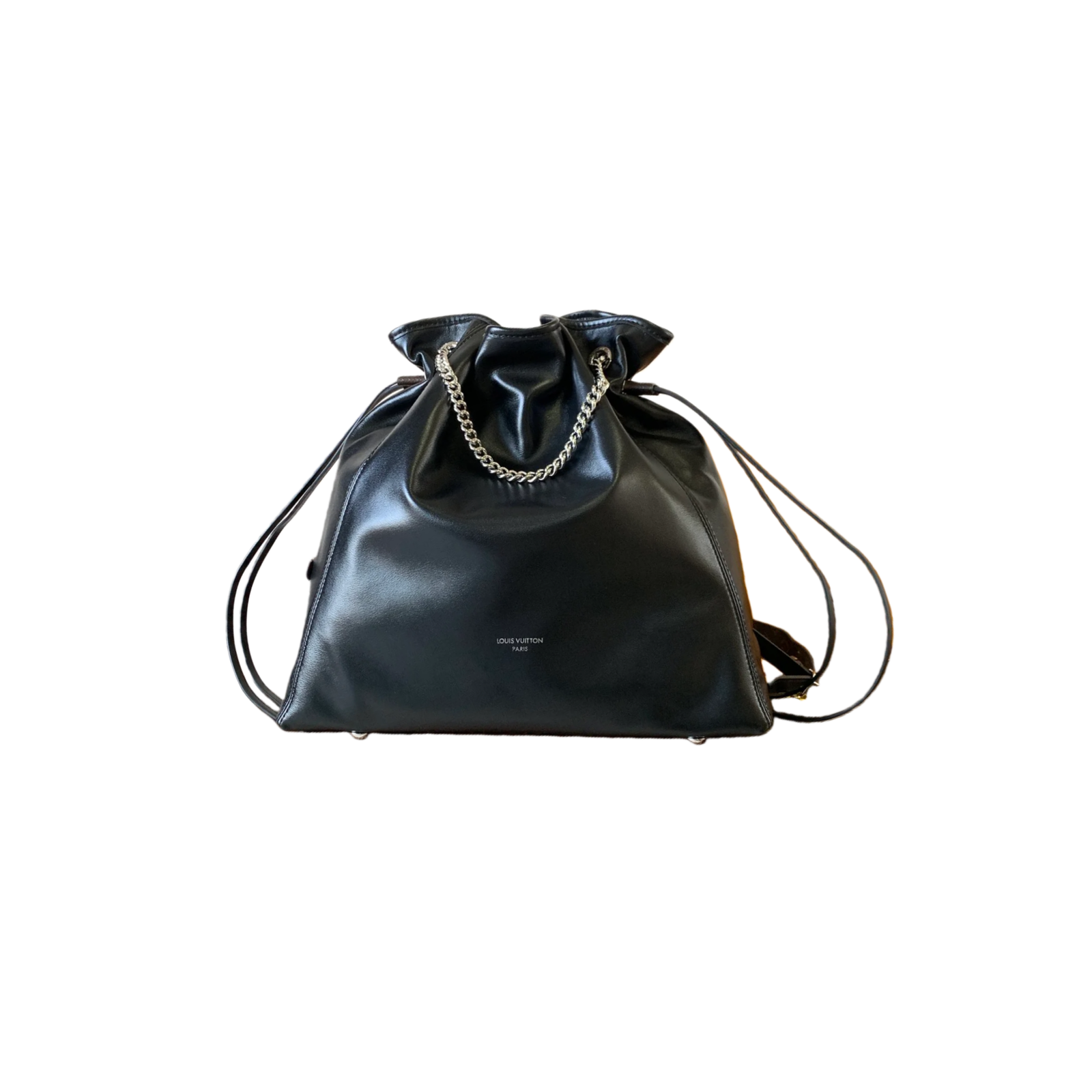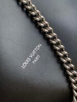 The M25545 Off Duty Medium Handbag with a changing code chip is part of the LV Vibe collection and adds an avant-garde rock style to any look. The lambskin body features polished metal hardware, with the LV Circle logo on one side. Dimensions: 24 x 11.5 x 33 cm (H x W x L). Materials: lambskin, cowhide trim, fabric lining, metal hardware. Features: side drawstring, magnetic closure, patch pocket. Can hold a 13-inch laptop, smartphone, headphones, Zippy long wallet, notebook, and sunglasses. Shoulder strap: non-detachable, adjustable. Strap half-length: 40.0 cm. Maximum adjustable half-length: 51.0 cm.