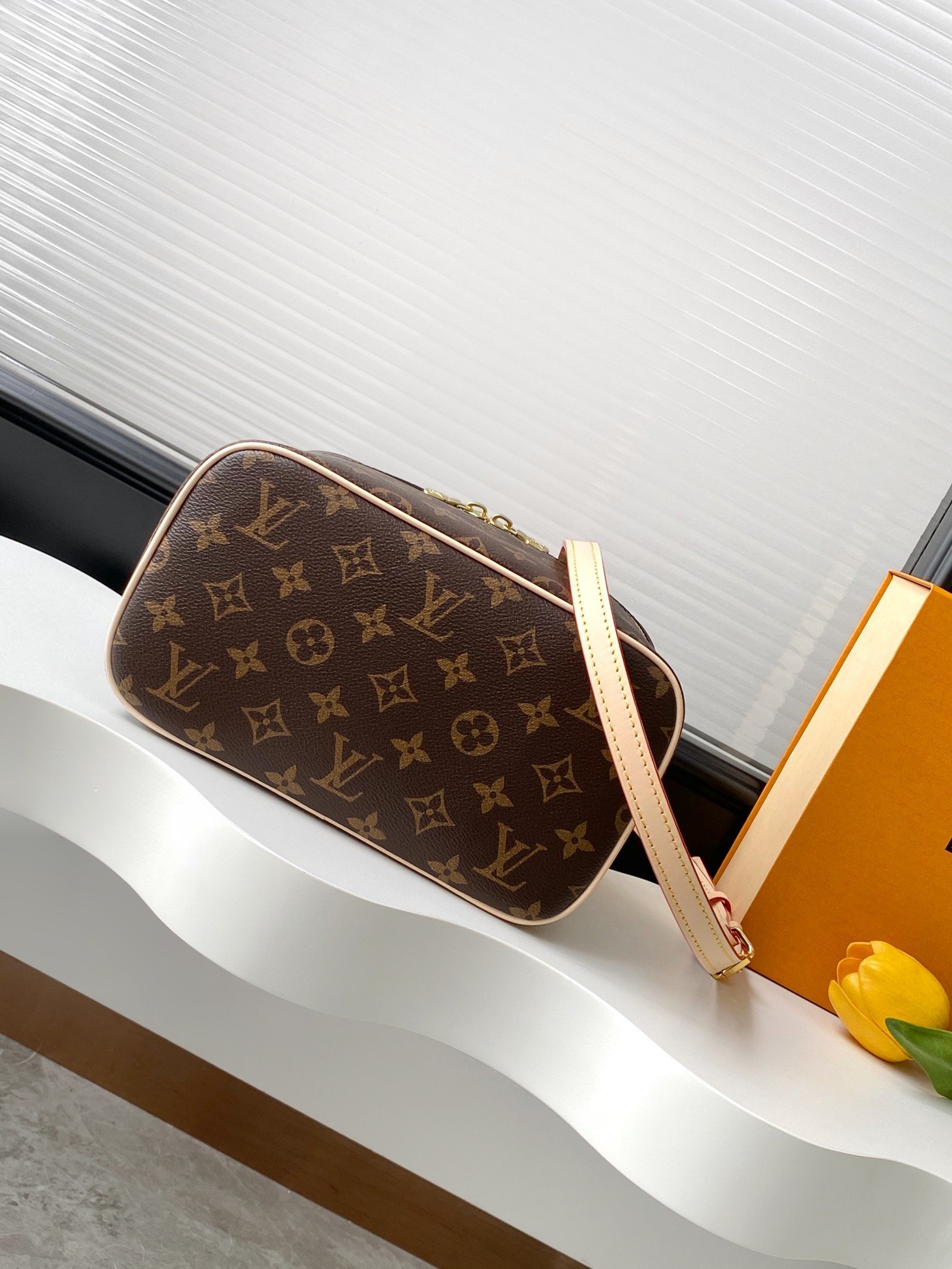 [Dynamic 163c01 Chip Top-tier Original Reinforced Version] M42265 Presbyopia Top-tier Original [Exclusive Background Real Shot] Small is beautiful. Inspired by the iconic Nice cosmetic bag, this elegant toiletry bag is a unique choice for carrying beauty essentials. The hidden zip pocket inside the flap can store valuable personal items. 24.0 x 18.0 x 14.5 cm (L x H x W) • Monogram coated canvas • Washable coated canvas lining • Leather trims • Brass hardware • Double zipper closure • Ample capacity • Zip pocket inside the flap • Several slip pockets inside
