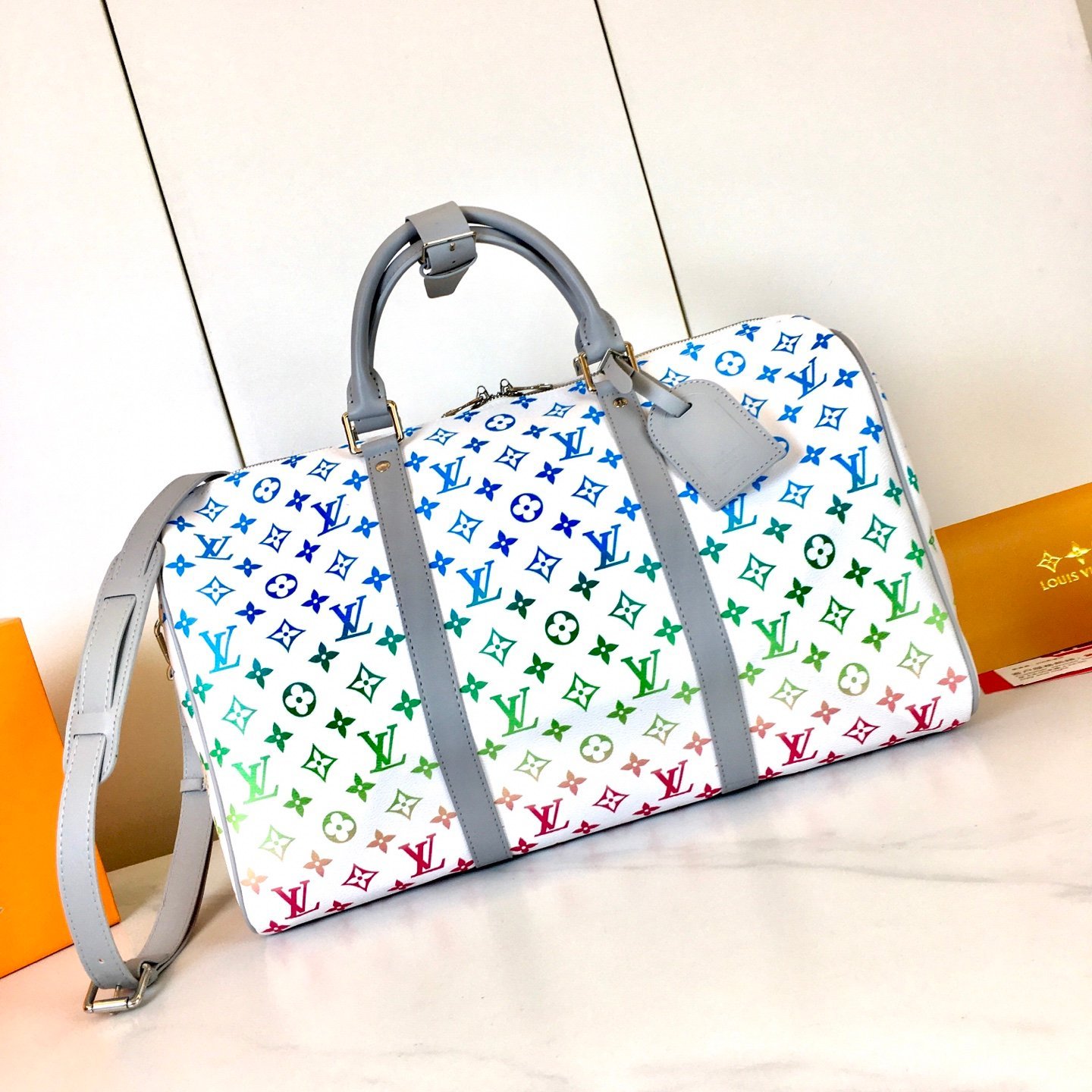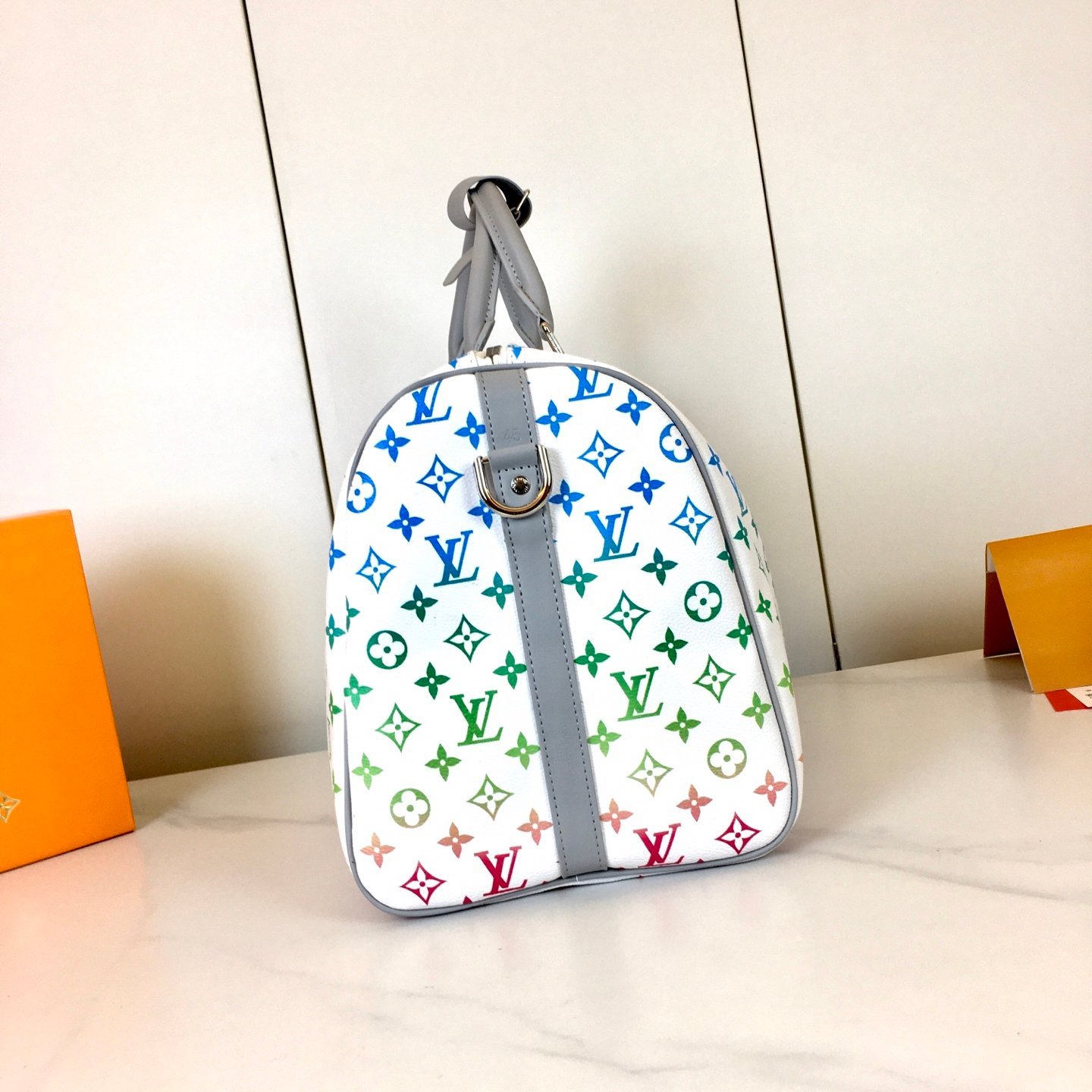 M13915, M41417, M41418 M24901 are the most popular of the year. This Lv X YK Keepall 50 combines classic design with signature details. Made of Damier Graphite canvas, it is sized for carry-on luggage. It features rounded leather handles and an adjustable, detachable shoulder strap with a shoulder pad for more comfortable carrying. The detachable pouch can be used as a clutch or a pocket. Size: 45x27x20cm (Length x Height x Width) M41416, M23962, M40667