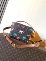 M14016 Feige Print Top Original Order Variable Chip 163C A Journey of Darjeeling InspirationEvents Source of Inspiration Keywords: Indian Culture / Travel Spirit / Animal Motifs Pharrell Williams drew inspiration from the Indian game “Snakes and Ladders,” making travel the central theme, combined with cultural experiences from Indian cities like Delhi, Mumbai, and Jaipur. Emphasizing ‘not to seek flashy attention, but to focus on exquisite detail.’ 25cm x 17.5cm x 11cm