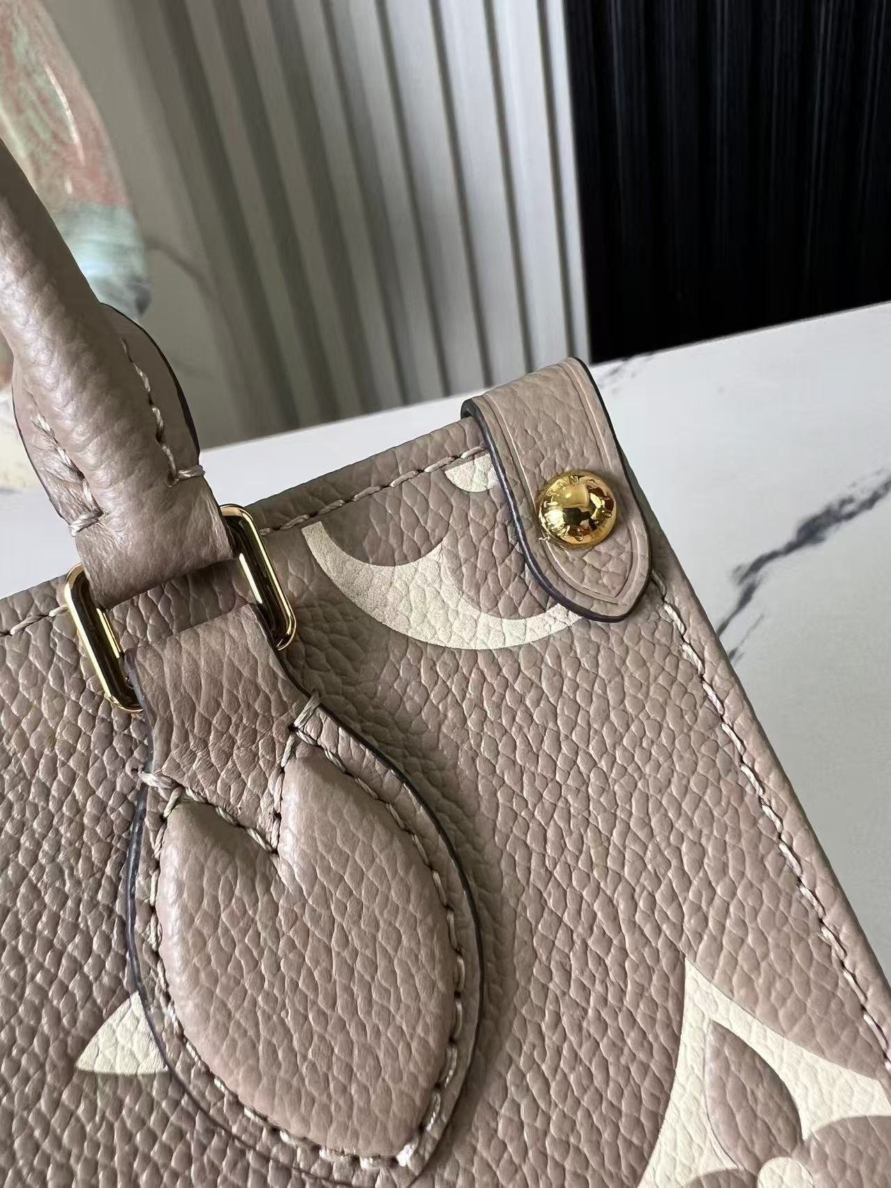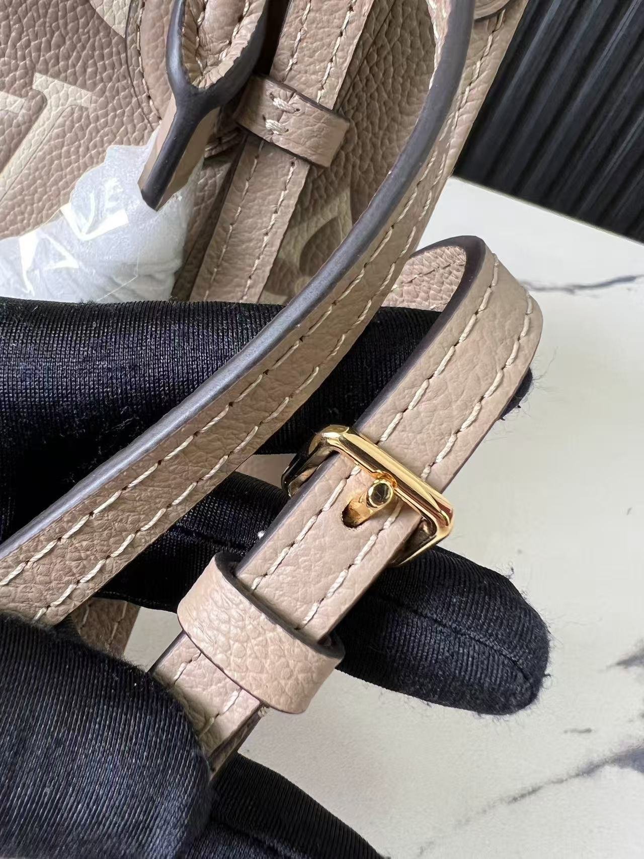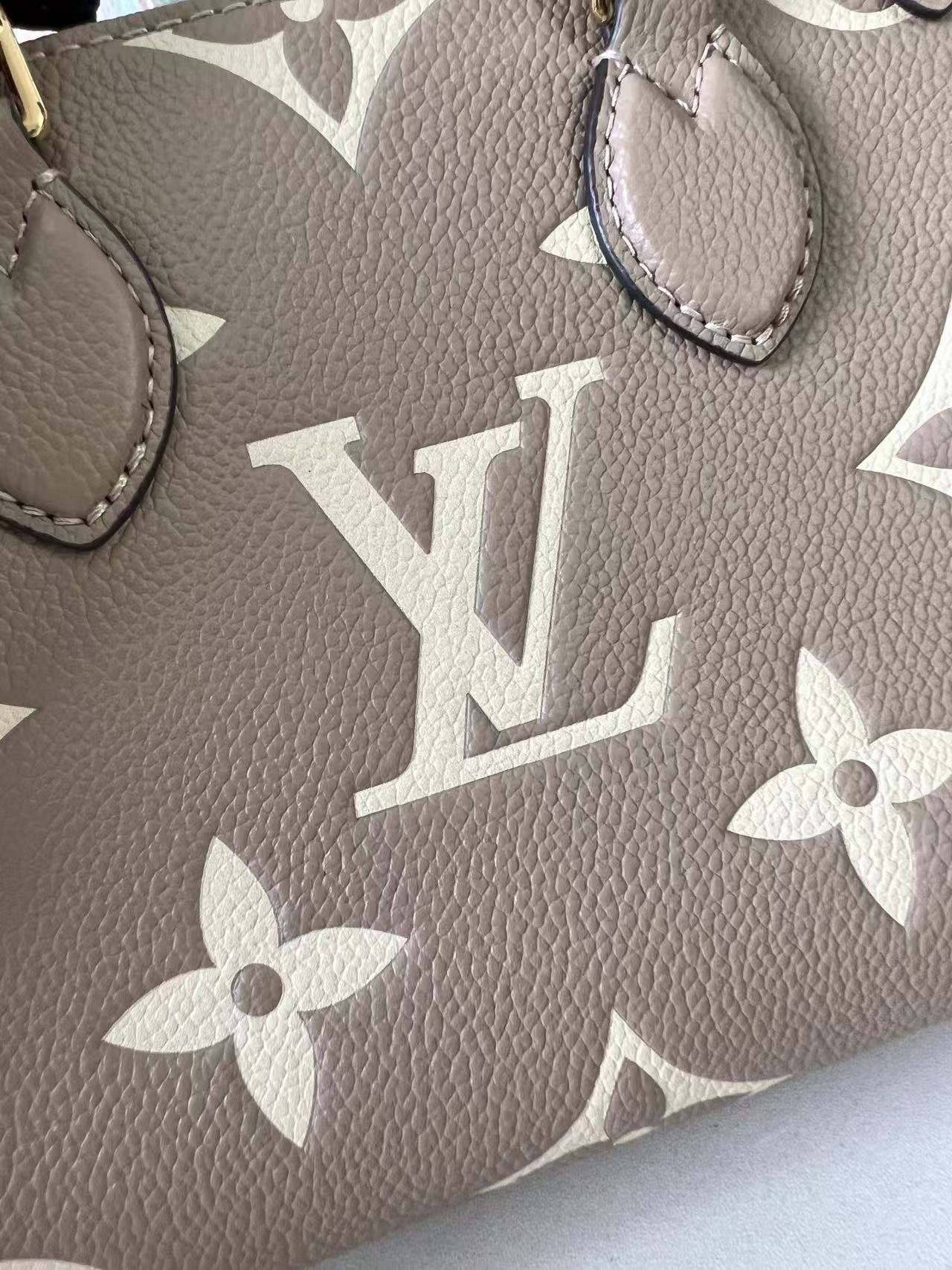 [Top Original Exclusive Real Shot] M47054 Gray Silk-Printed Full Leather M46993 Square Bag Series. This OnTheGo BB handbag features Monogram Empreinte leather embossed with the Monogram pattern, showcasing meticulous craftsmanship with chic handle attachments and studded leather corner details. Its compact shape can hold a smartphone and a short wallet, and the detachable, adjustable shoulder strap allows convenient shoulder carrying. 18 x 15 x 8.5 cm (Length x Height x Width).