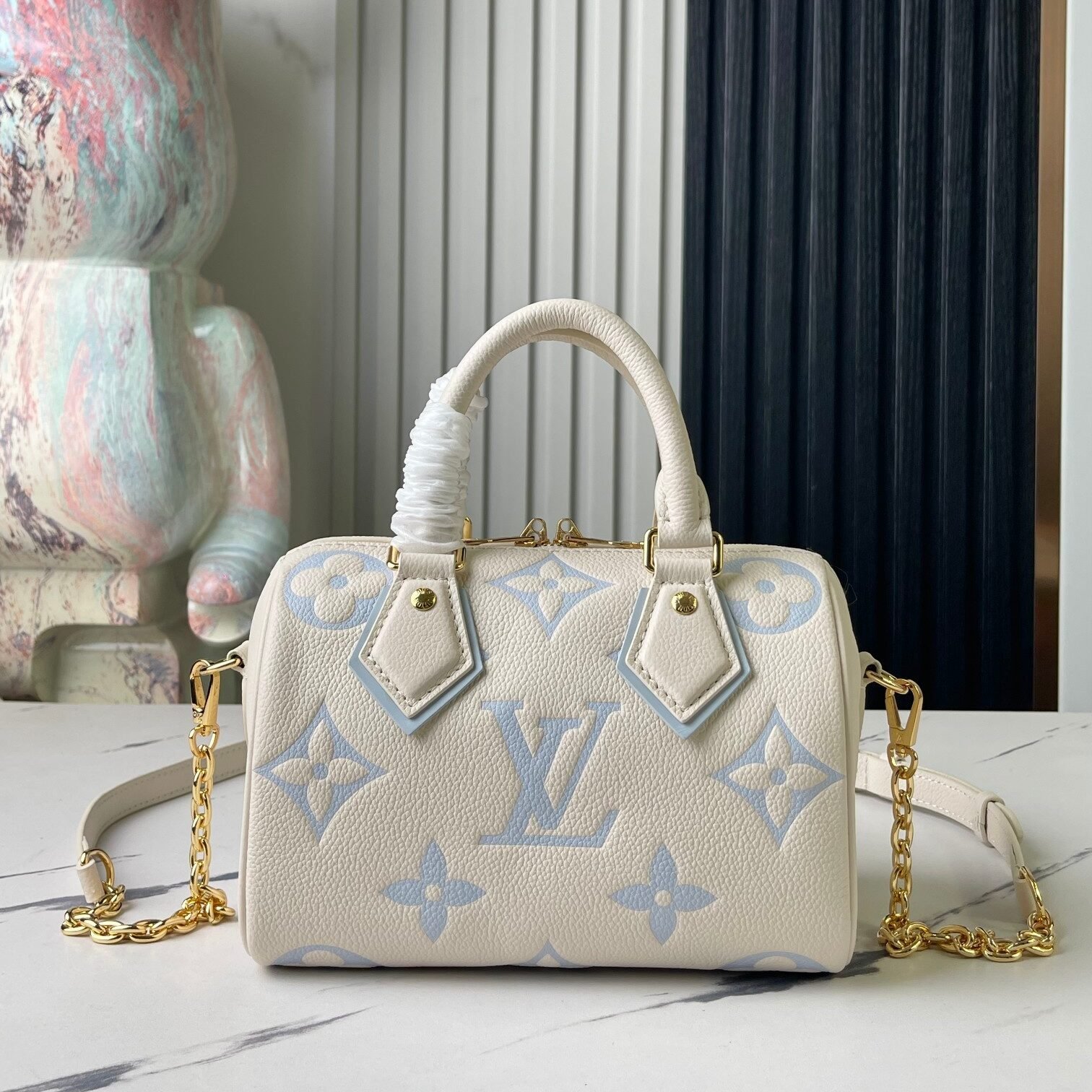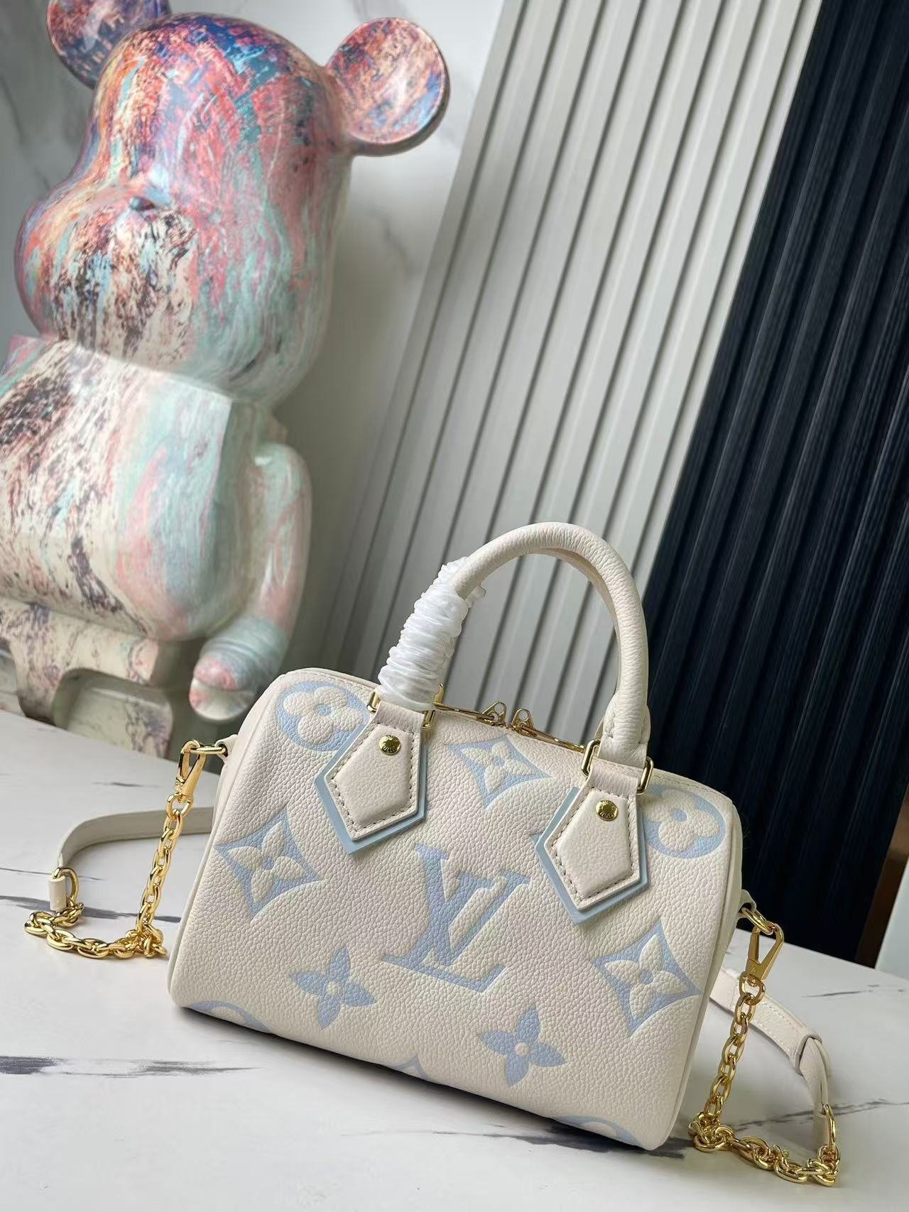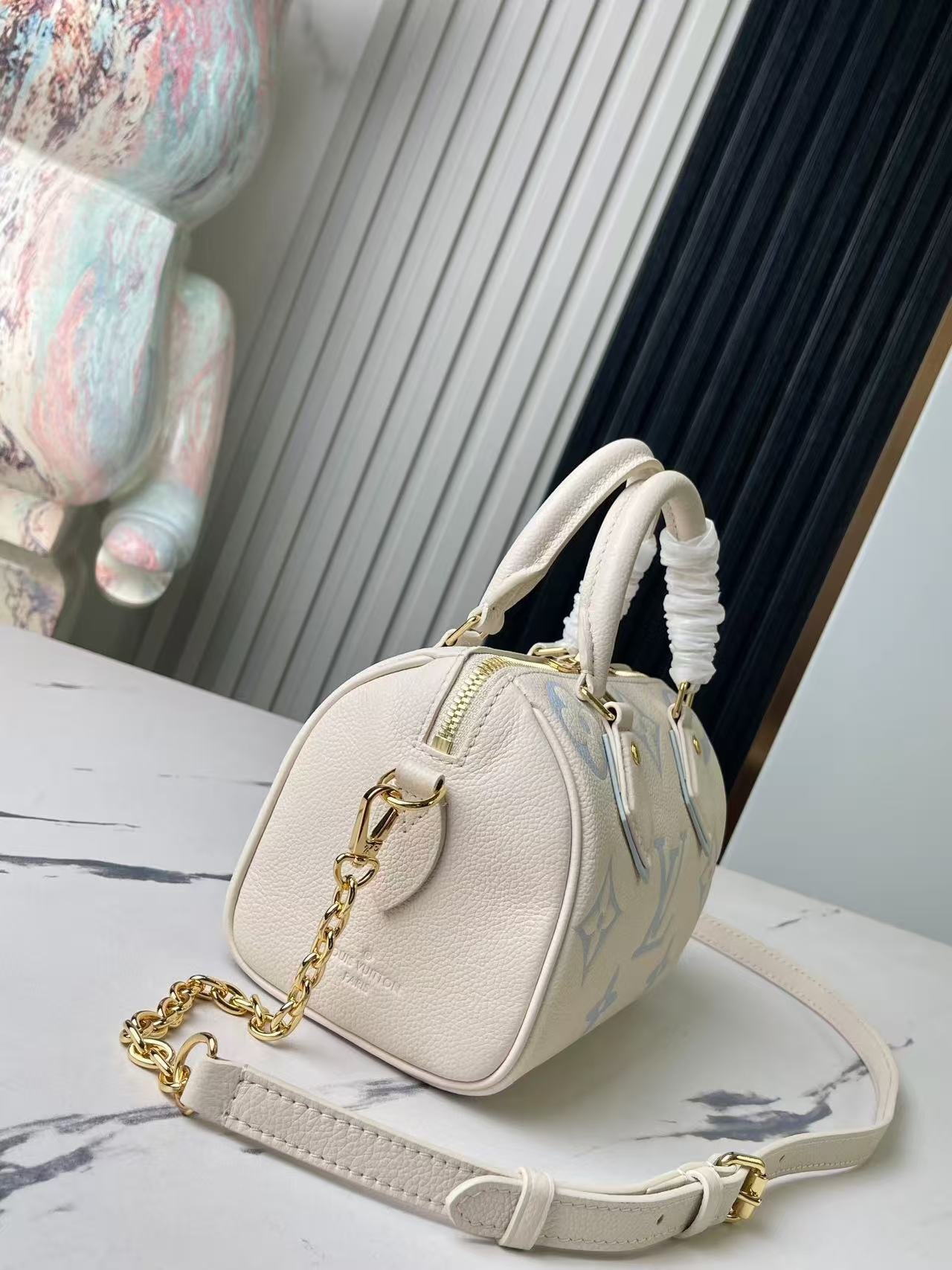 [Top Original Exclusive Real Shoot] M46883 M46397 Blueberry Milk Full Leather Speedy Pillow Bag Series This Speedy Bandoulière 20 handbag comes from the brand-new Dégradé series. The Monogram Empreinte embossed leather body displays vibrant colors, adding a pop of brightness to your seasonal outfits. The rolled Toron handles and adjustable shoulder strap allow for effortless elbow or shoulder carry, making it a perfect companion for urban life and summer gatherings. Dimensions: 20.5 x 13.5 x 12.0 cm (L x H x W)