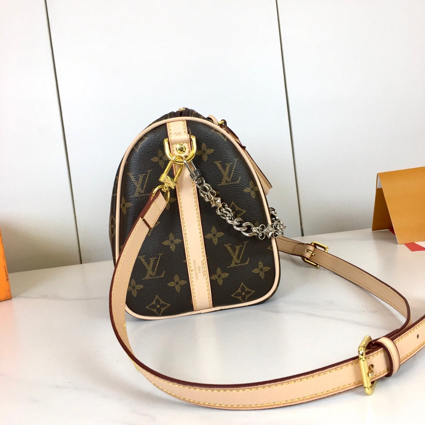 Top original version, M40390, the Speedy 25 handbag is a perfect urban handbag. Its iconic shape and classic Monogram canvas, combined with multiple carrying options and luxurious natural leather trim, add a touch of fashionable avant-garde to the bag. Size: 25x19x15, M40391, M46977