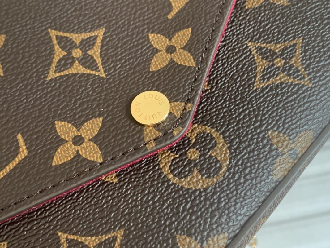 Three-piece set. Model M61276 Felicie handbag is elegant and luxurious. It contains two detachable pockets. It is a fashionable choice for carrying and organizing your everyday items. It is more than just a wallet. After removing the gold chain, it can also be used as a charming handbag or a small handbag. Size 21 * 11 * 2cm