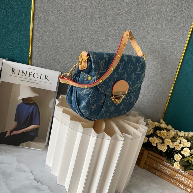 Upgraded version M46829 Sunset handbag focuses on Monogram Denim canvas. This material is made through multiple processes. Cotton yarn certified by the Global Organic Textile Standard is used to weave the Monogram pattern and then bleached. The sand washing treatment of the finished product creates a unique look, and the brand’s buckle adds a striking style. 27.0 x 18.0 x 3.0 cm.