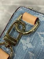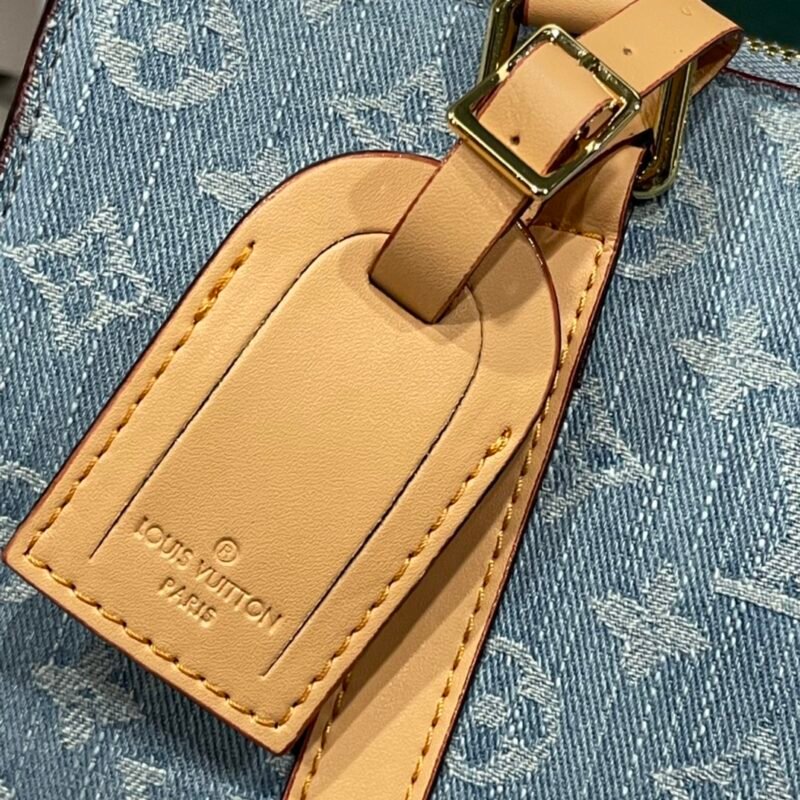 The全新 Sac Plat Cross handbag is based on Louis Vuitton’s classic Sac Plat handbag. It features luxurious Taurillon leather combined with refined details such as leather reinforcement straps and nameplates. The Monogram pattern is woven with cotton denim and presents a retro style after bleaching and sand washing. It shows a subtle distressed effect and is equipped with a wide-mouth zipper opening and closing. The detachable shoulder strap allows for multiple carrying methods.