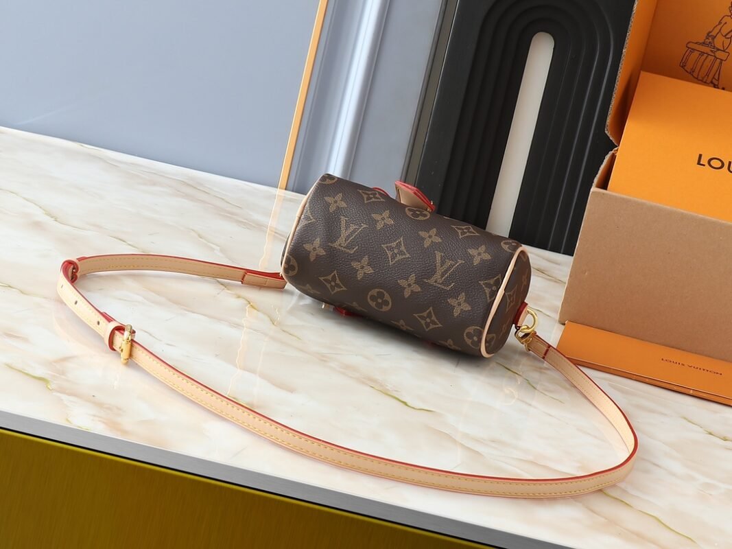 Upgrade the original M13391, M13406, and M81085 LV x Takashi Murakami Nano Speedy bag. This Nano Speedy bag combines Monogram canvas with leather trim prints, featuring 33 vibrant colors in white, black, and red. It has become a global hit, beloved by celebrities and influencers. Dimensions: 16x10x7.5 cm.