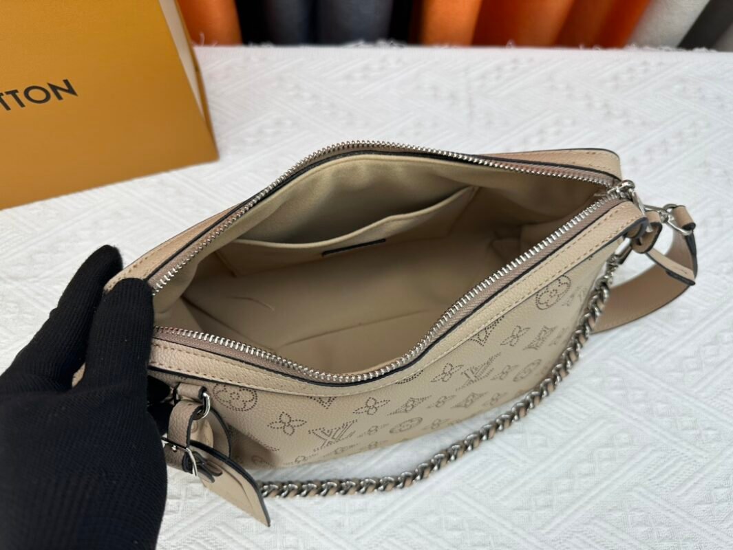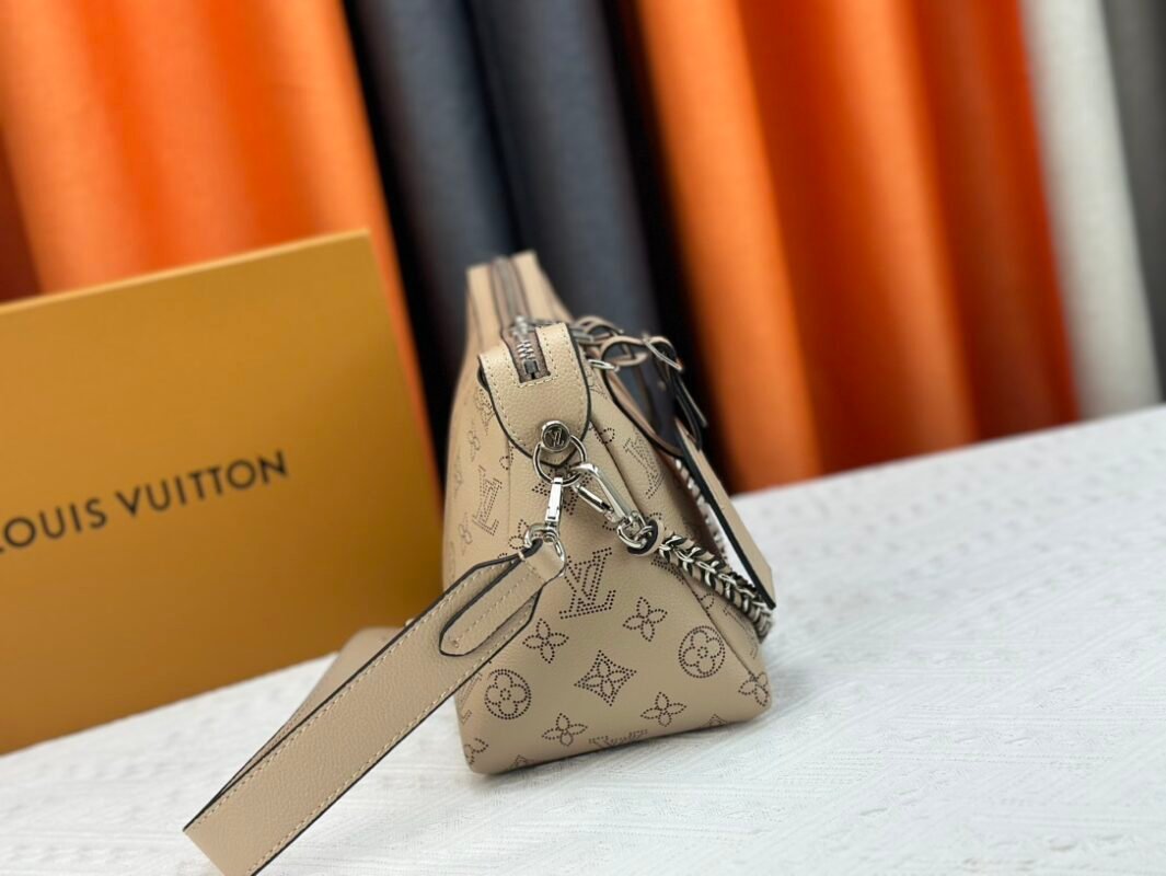 This Mahina Hand It All handbag is made of finely perforated cow leather to complement the chic contour of the bag with an elegant pendant texture. The leather shoulder strap and chain leather woven handle are removable, providing a trendy choice for everyday travel. Large 32.0 x 29.0 x 13.0 cm