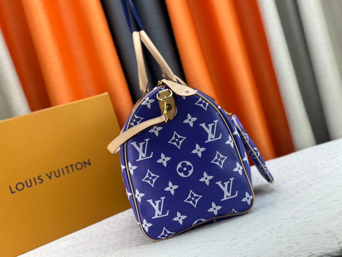 M46964 m24422 m41416 m24420 m11565 Speedy P9 Bandouliére 50 monogram leather handbag is wrapped in soft grained cowhide leather and lined with sheepskin. The silk-screened monogram pattern presents a blurred look of canvas printing, revealing the new season’s ingenuity of creative director Pharrll Williams. Size: 50x29x23cm.