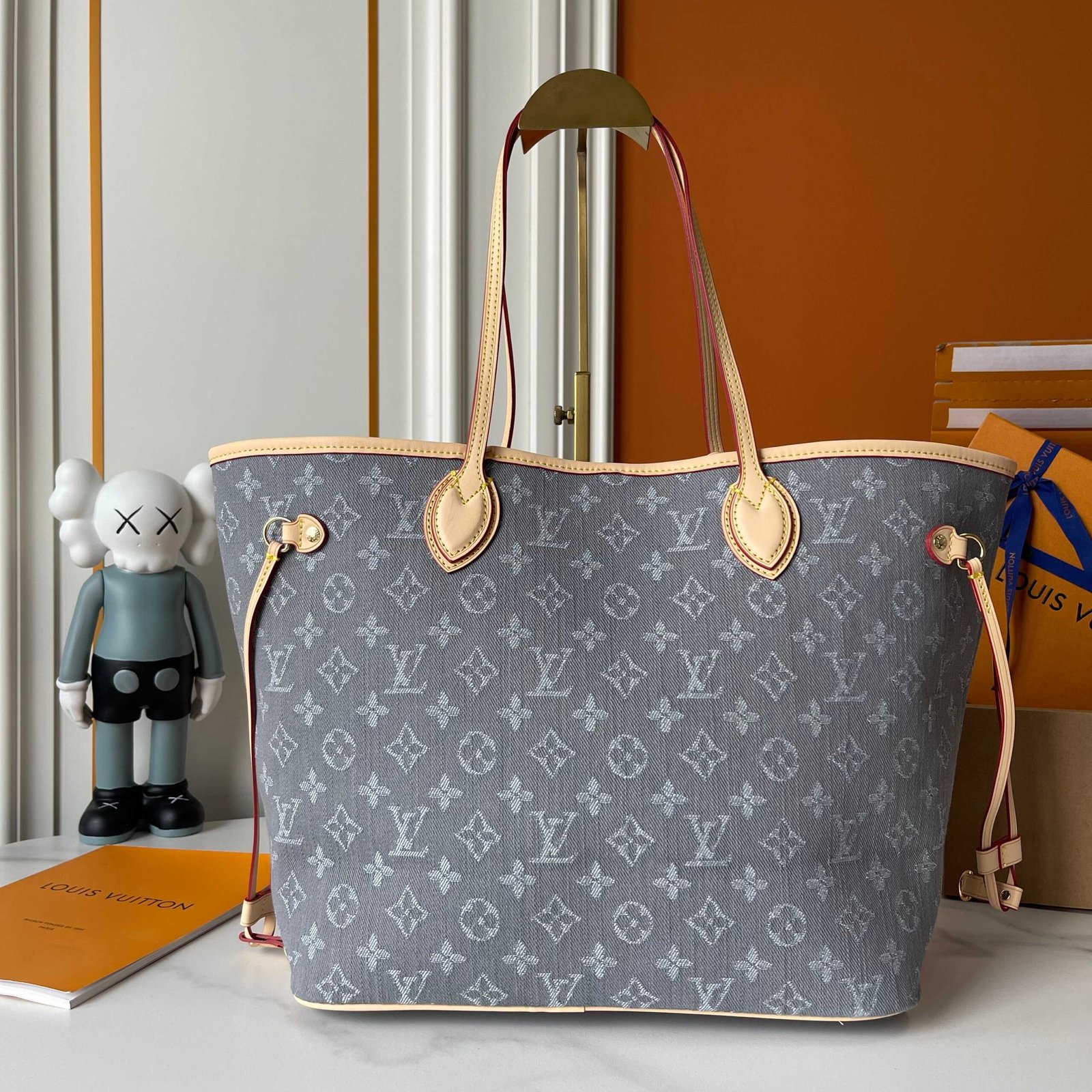 Upgraded M40995 M13192 Upgraded to the original, the handbag focuses on Monogram Denim canvas. The material is made by multiple processes, woven in a Monogram pattern with cotton yarn certified by the Global Organic Textile Standard and then bleached. The finished product is sand washed to create a chic look. The Neverfull medium handbag is perfect for everyday use. This perfect handbag is very practical, fastening the straps on the bag also makes it appear more delicate, making it a fashionable urban handbag. Size: 32x29x17cm
