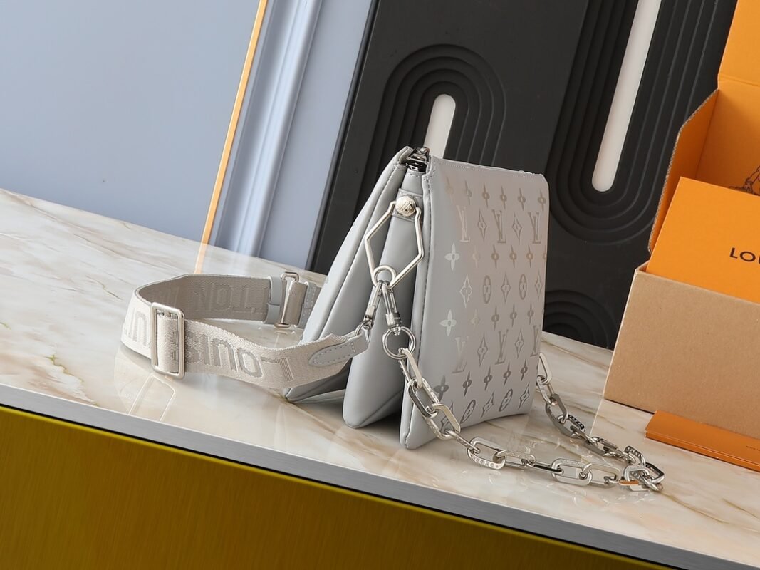 The upgraded original M20369, M22398, M21353, M21209, M57790 black, M57792 bright red, M57793 white, M57936 green, M57913 silver, M58699 light blue, M59278 gold, M57791 khaki, M59276 rose pink, M59275 dark red, M59277 caramel Coussin mini handbag shone brightly at the Spring/Summer 2021 fashion show. The Monogram embossed fluffy sheepskin creates a pillow configuration, injecting avant-garde style into the simple design. It can be carried crossbody with a shoulder strap or transformed into a chain baguette bag, or carried under the armpit. Size: 26 x 20 x 12 cm.