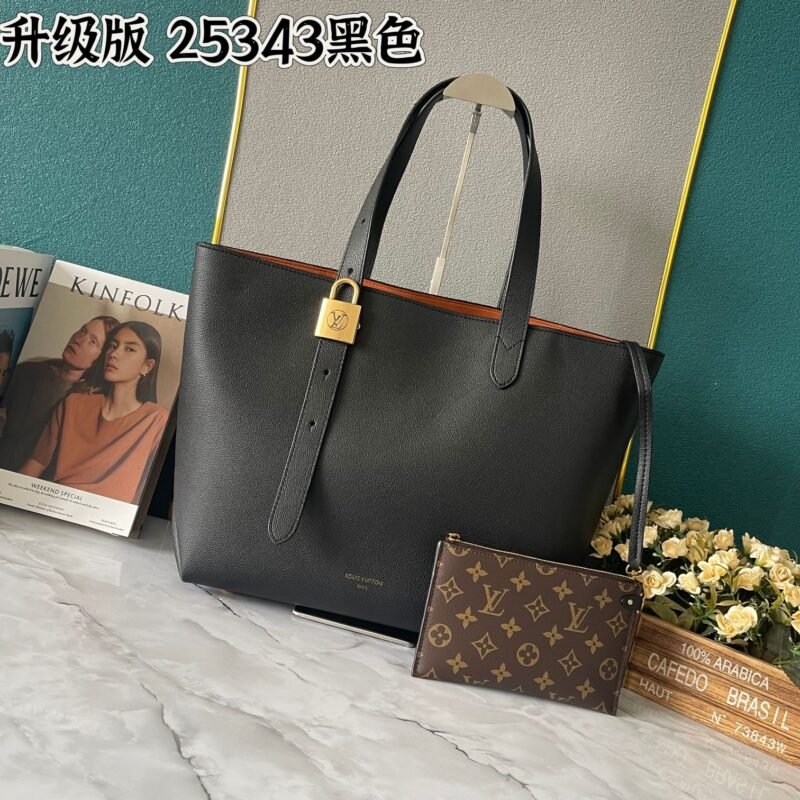 Upgrade the original M25341 M25342 M25343 (quality comparison among three, real photos). This medium-sized Low Key Cabas handbag is wrapped with soft grained cowhide leather and lined with suede leather, crafted with ingenuity to create a magnificent style. The brand’s signature padlock interprets the combination of elegant aesthetics and safety performance. The adjustable handle realizes the free switching between hand-held and long or short shoulder carrying. Size: 47.0 x 30.0 x 14.0 cm.