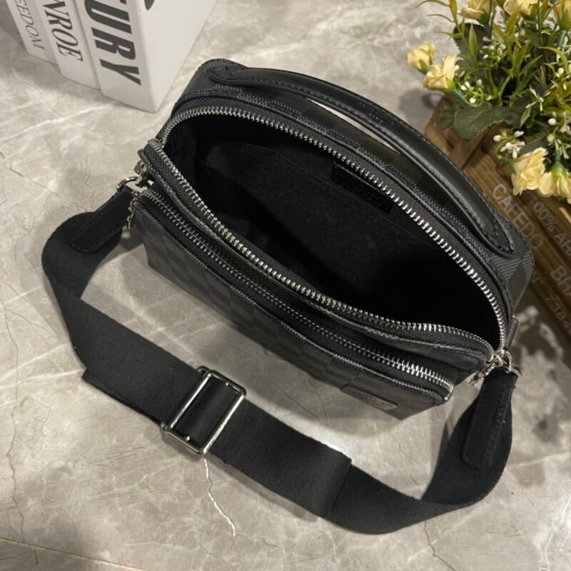 Upgraded version. The latest M11657 cross-grained, pressed, black grid District small messenger bag on the official website is made of deeply dyed Taïga leather and comes with a zippered front pocket. With its square configuration and appropriate size, it is an excellent choice for daily use. The adjustable shoulder strap is convenient for shoulder carrying and crossbody carrying! Size: 22.5×15.5×7.5CM.
