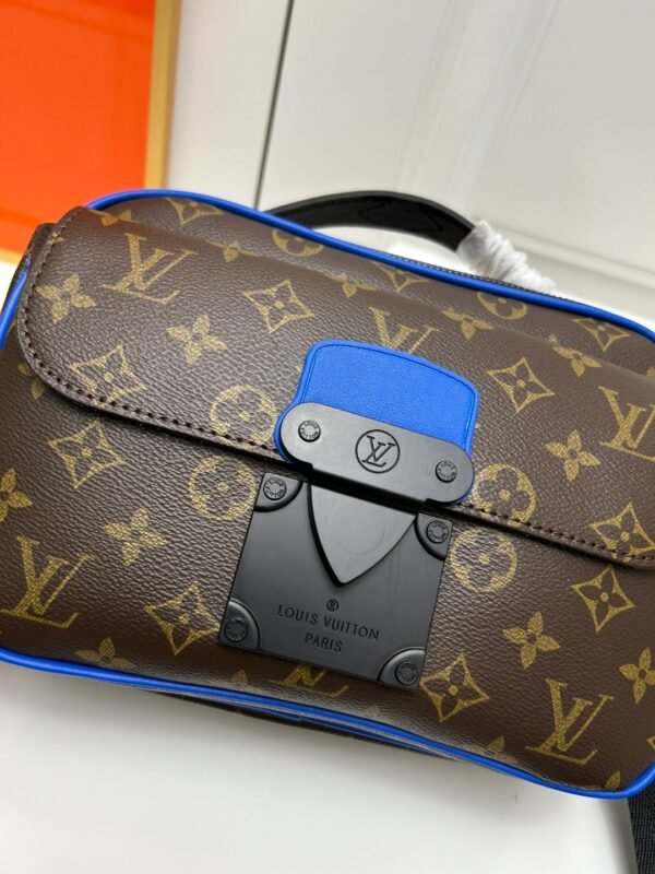 This S Lock messenger bag is made of Monogram Macassar canvas. The new lock is inspired by the hard-sided trunk lock designed by Georges Vuitton in 1886. Special finishing techniques give this magnetic metal lock a striking modern look. It is also equipped with a spacious zipper compartment, a leather handle in hard-sided trunk style and an LV logo shoulder strap. It is stylish and easy to use. Size: 22.18.8. M58489 embossed. M45806 black. M45836 blue.