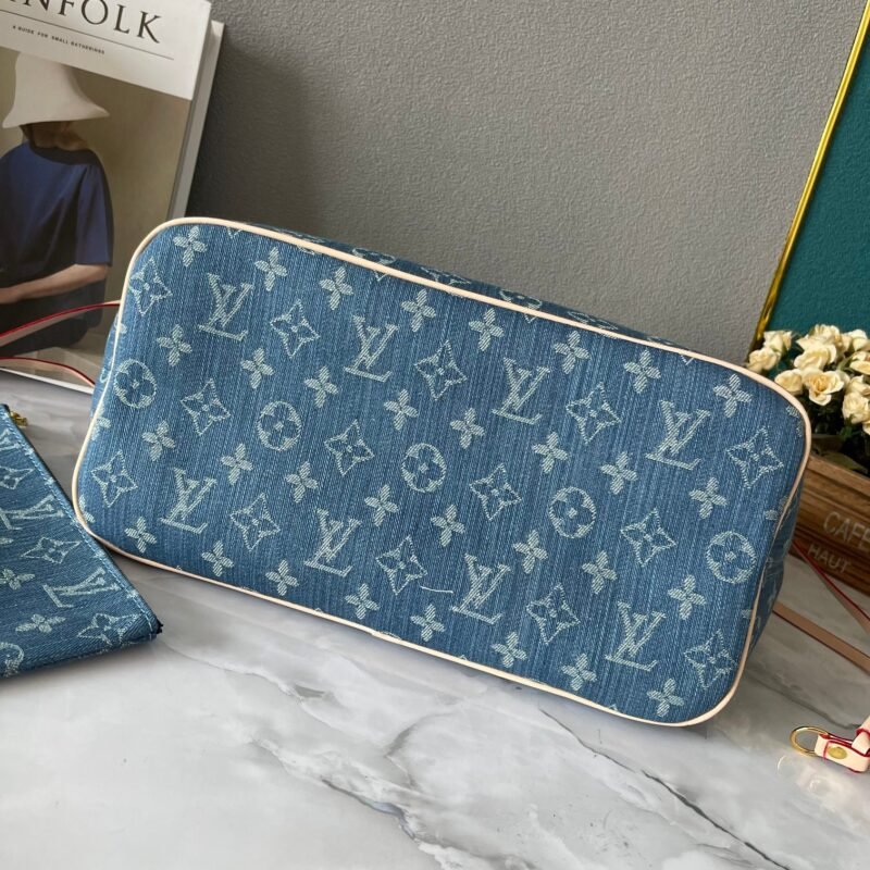 Upgraded version 1M40995 medium denim jacquard denim shopping bag 💋💋 Louis Vuitton’s new Neverfull reinterprets the classic handbag and explores the delicate details inside the bag. The redesigned inner bag features a fresh fabric lining and retro details inspired by the Louis Vuitton archives. The most remarkable is the detachable zippered clutch, which can be used alone as a delicate clutch or as an additional pocket. The bright lining color adds more liveliness to the Monogram classic canvas. Size: 32*29*17 cm.