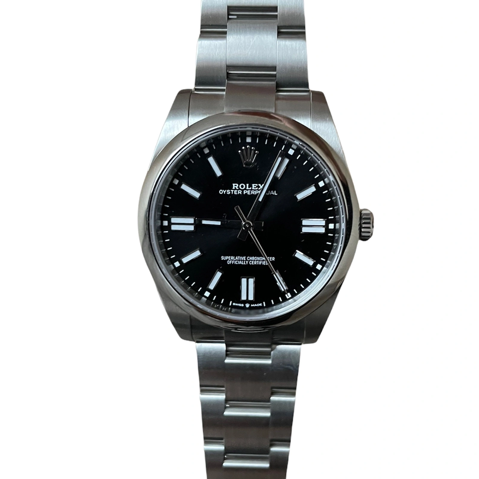 The Oyster bracelet is a perfect alchemy of form and function, aesthetics and technology. First introduced in the late 1930s, this particularly robust and comfortable metal bracelet with its broad, flat three-piece links remains the most universal bracelet in the Oyster collection. For the Oyster Perpetual models the Oyster bracelet is fitted with an Oysterclasp.