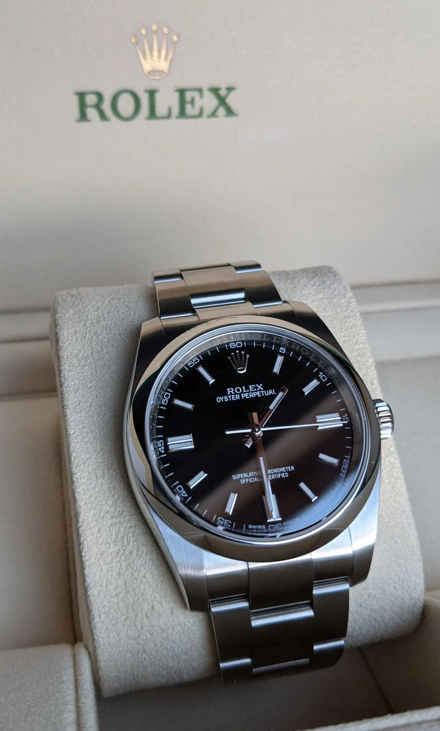 Rolex uses Oystersteel for its steel watch cases. Specially developed by the brand, Oystersteel belongs to the 904L steel family, alloys most commonly used in high-technology and in the aerospace and chemical industries, where maximum resistance to corrosion is essential. Oystersteel is extremely resistant, offers an exceptional finish once polished and maintains its beauty even in the harshest environments.
