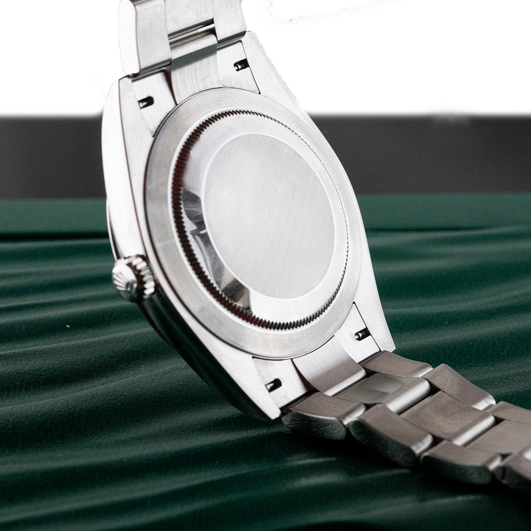 Rolex uses Oystersteel for its steel watch cases. Specially developed by the brand, Oystersteel belongs to the 904L steel family, alloys most commonly used in high-technology and in the aerospace and chemical industries, where maximum resistance to corrosion is essential. Oystersteel is extremely resistant, offers an exceptional finish once polished and maintains its beauty even in the harshest environments.