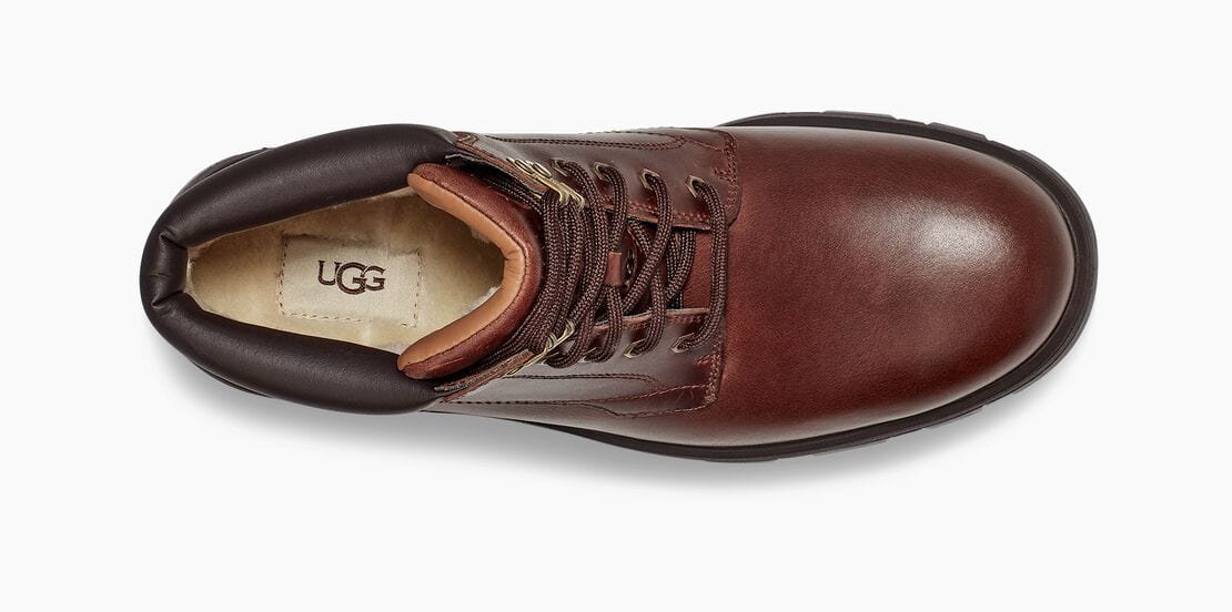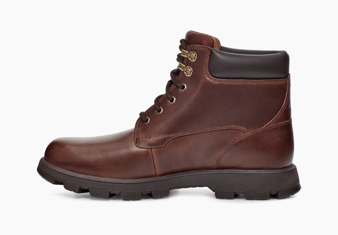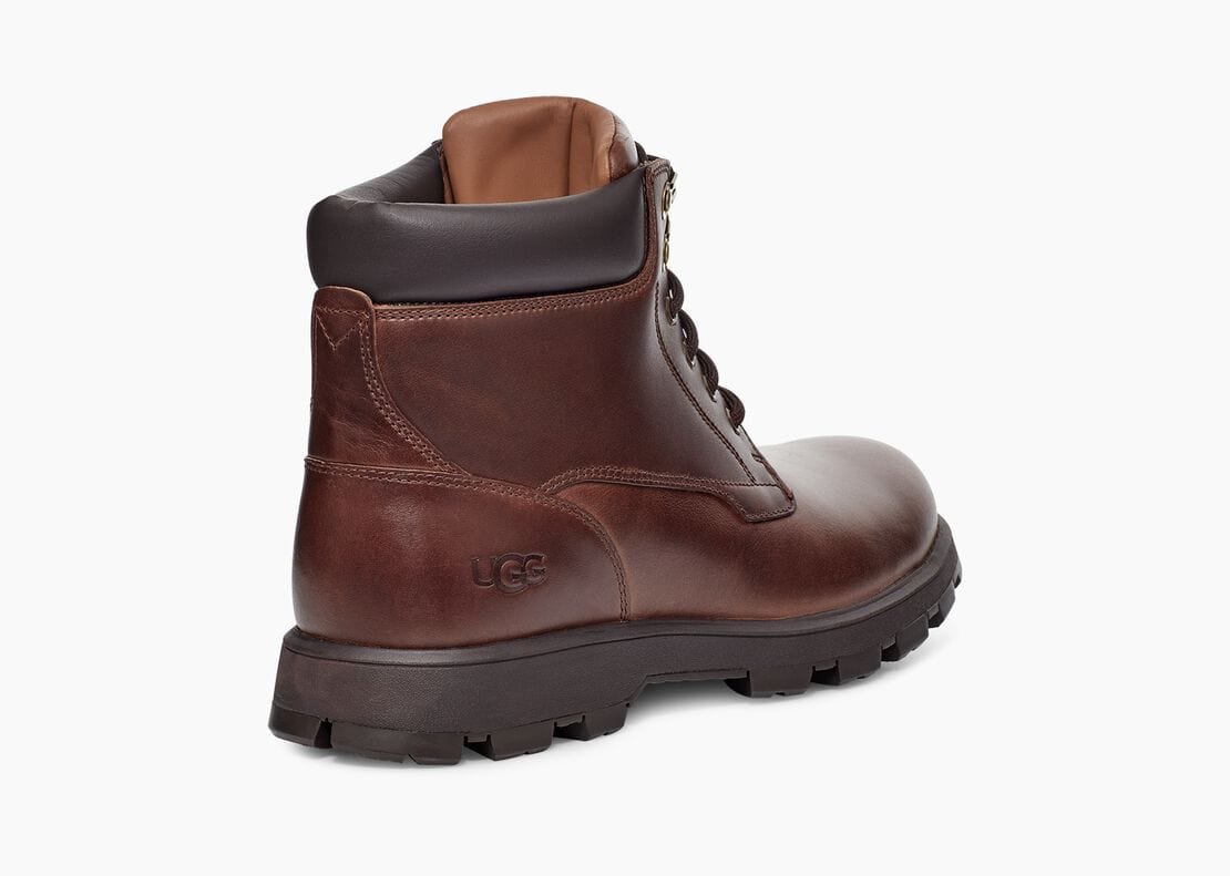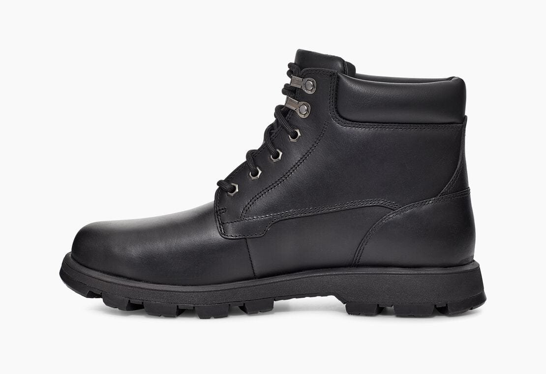 Reworking a timeless workboot silhouette, the Stenton is a rugged style made with seam-sealed waterproof leather for enhanced protection from the elements. Featuring functional metal hardware, comfortable collar padding, and a medial zipper for ease of entry, it’s finished with our soft UGGplush wool blend and an ultra-durable Vibram® outsole for superior traction. Pair with jeans and a flannel, slacks and a military jacket, or any other look you can imagine the possibilities are endless.