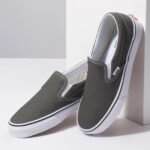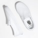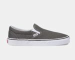 The Vans Classic Slip On is one of the most sought-after slip on shoes of all time. Its original appearance and slim design makes shoe (and skate) junkies drool. The upper is made from canvas with elastic side accents. The Vans Off the Wall outsole and padded collar remain, keeping this shoe a classic. The rubber outsole and vulcanized sole on these men’s large size shoes provide outstanding traction control for all your tricks and turns at the skate park.