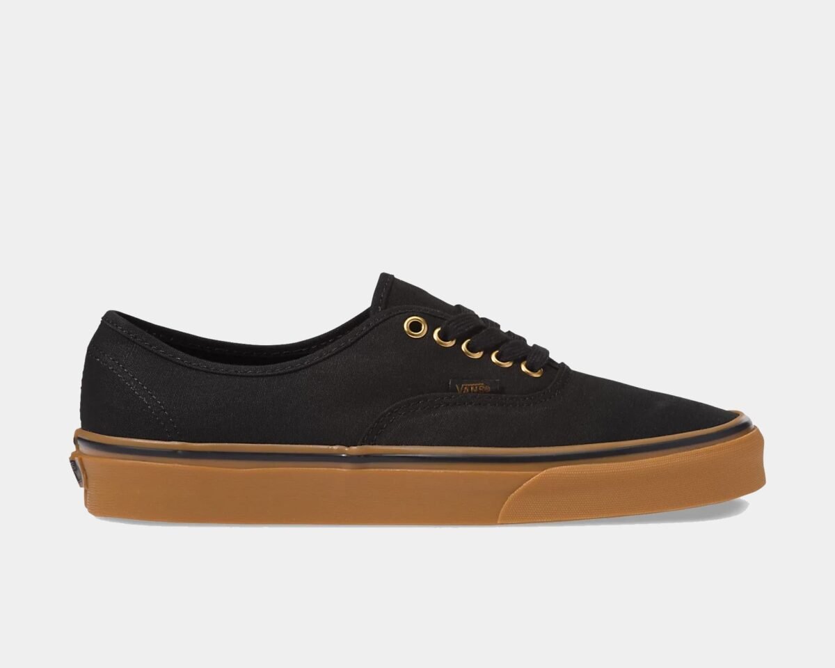 Vans The Gum Authentic combines the original and now iconic Vans low top style with sturdy canvas uppers, metal eyelets, and gum-colored signature rubber waffle outsoles. – http://www.vans.com/shop/gum-authentic-dark-slate-black